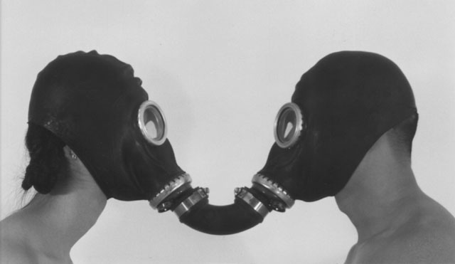 The object brings two human bodies together into a single closed unit, inhaling and exchanging.
