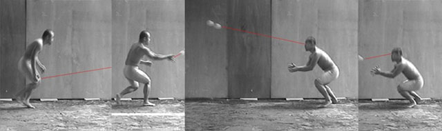 The action of throwing and catching is presented as imagery through the medium of video. This involves a process of materialization. It transforms the action of throwing and catching from the perceptual experience by the self to a phenomenon that is ‘illustrated’. When this phenomenon is communicated to the perceptual system of the audience - the other, through visual imagery unaccompanied by motor actions, the circuit of Perception, Conception and Expression is activated (the interpretation of the audience is his/her expression). Thus, meaning is formed in this conceptual framework of understanding the work.
