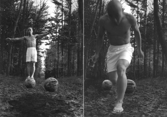 Walking on Two Balls started by carving two wooden spheres from a tree trunk. In the carving process, Input of Energy through the Physical and Mental Exercise of my body, Transformed the Material and gave the new object certain Cultural Meaning ( e.g. the sphere has become symbol of the Universe in many world cultures ). That fulfills the basic idea of traditional art making. However, to me, it should not be the final outcome.