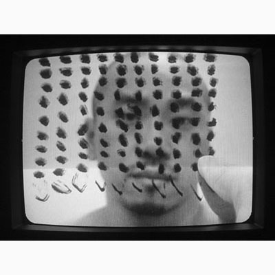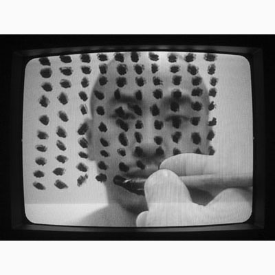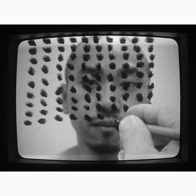 In “Counting from 1 to 100”, there is much repetition and overlapping of imagery and media. My own appearance becomes a mirror image reflected in the mirror as a medium. The ink dots deposited on the mirror cause the mirror image to become an incomplete self (covered by ink dots) when it enters my vision. This incomplete self is represented through the medium of video and becomes an image which can be interpreted by others (the audience). The meaning of the work keeps evolving through the interaction of repetition, overlapping imagery and media.